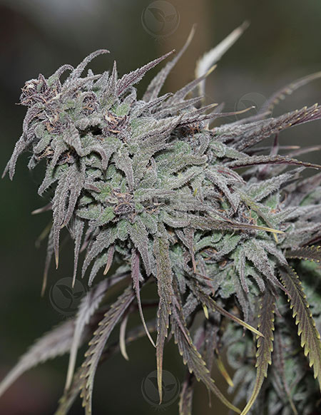 Growing info – Grows tall and lanky like a Sativa but smokes more like an Indica. High calyx to leaf ratio. Long stacking colas with red stems and narrow leaves this is one exotic cultivar to grow. Excellent yields for hash production. Harvest at latitude 42.0 October 10-20