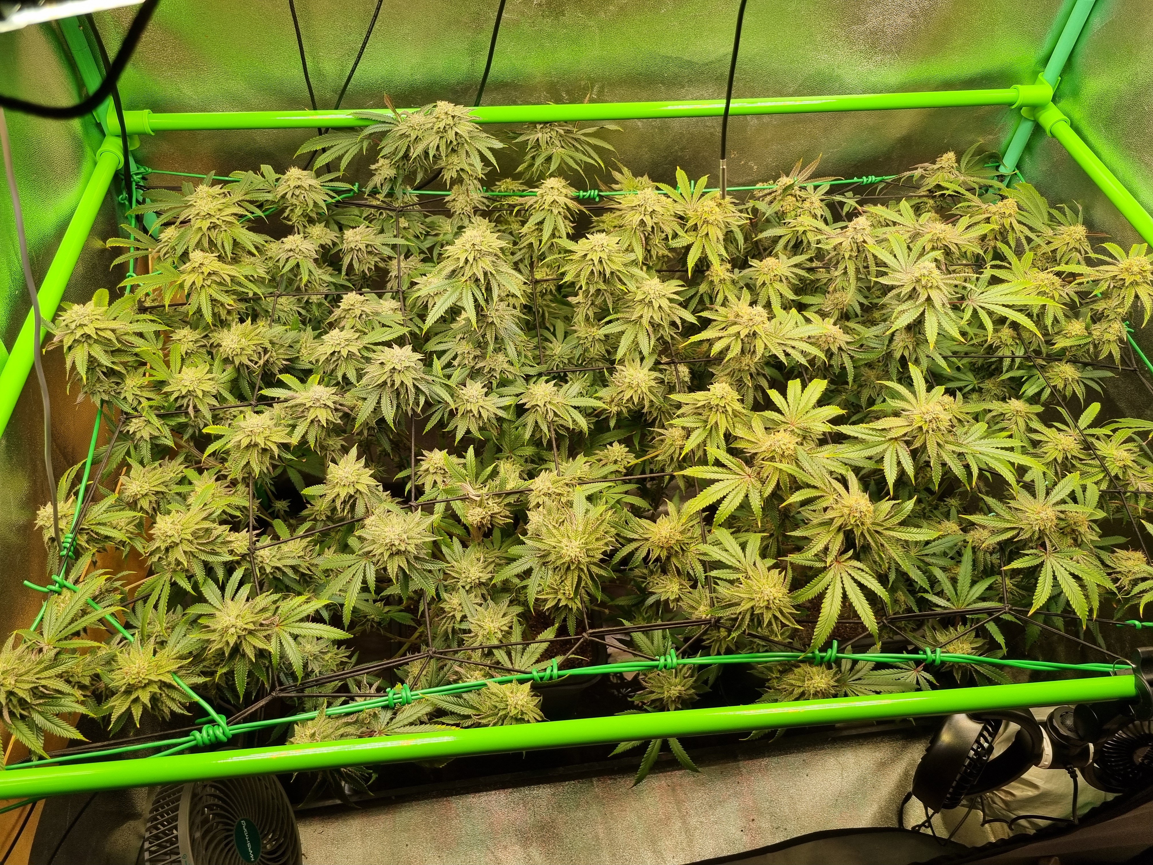 Stehen in 2x Coco/perlite in 18 liter Töpfen. Angefangen mit canna coco A+B und zum Schluss mit hesi bloom gedüngt weil canna coco leer ging.